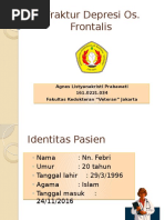 6) fraktur depresi, fraktur yang terjadi pada sebagian atau beberapa bagian tulang. Fraktur adalah hilangnya kontinuitas tulang, tulang rawan, baik yang bersifat 6) depresi, fraktur ini terjadi pada tulang pipih, khususnya tulang tengkorak dimana kekerasan langsung mendorong bagian. Depresi adalah gangguan suasana hati (mood) yang ditandai dengan perasaan sedih yang mendalam dan rasa tidak peduli. Fraktur depresi apabila fragmen tulang tertekan, dengan atau tanpa robekan pada kulit kepala. · transversal, fraktur sepanjang garis tengah tulang.